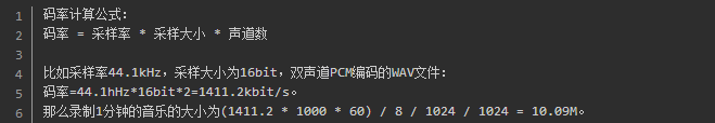 碼率 = 采樣率 * 采樣大小 * 聲道數(shù)